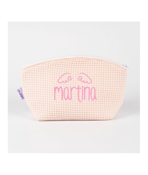 Neceser Gofre Rosa Soft Personalizado, 100% algodón acolchado con plastificado interior impermeable