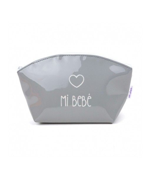 Neceser Gloss Gris, tejido charol, acolchado, interior impermeable