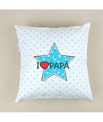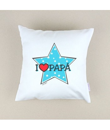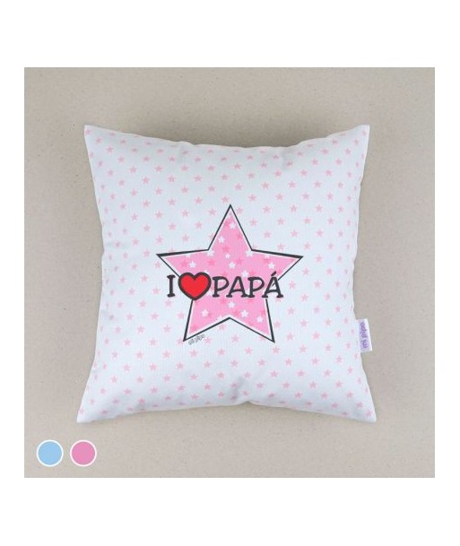 Cojín cuadrado piqué I love Papá con estrella Azul o Rosa