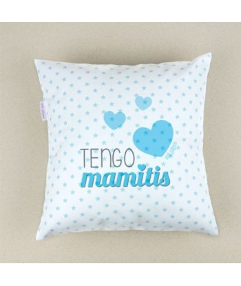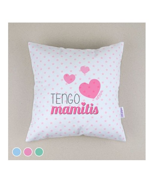 Cojín cuadrado piqué Tengo Mamitis Menta, Azul o Rosa