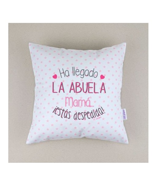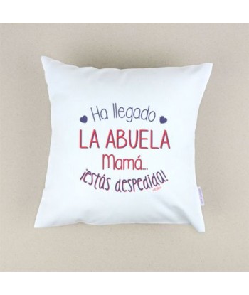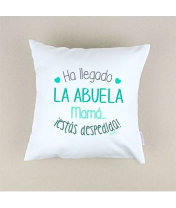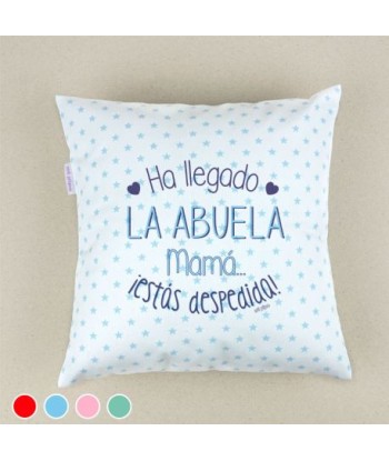 Cojín cuadrado piqué Ha llegado la Abuela, Mamá estás despedida Menta, Rojo, Azul o Rosa