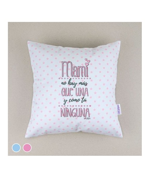 Cojín cuadrado piqué Mami no hay más que una y como tú ninguna Rosa o Azul