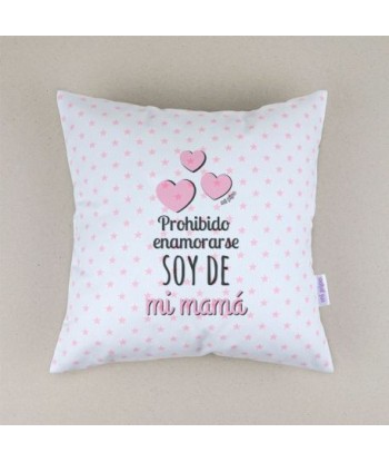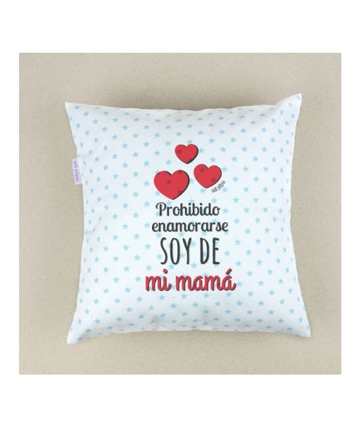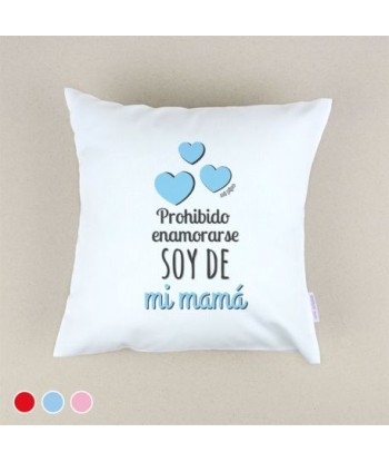 Cojín cuadrado piqué Prohibido enamorarse, soy de mi Mamá Rojo, Azul o Rosa