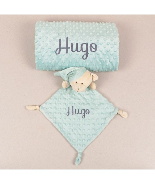 Pack bebé Dou Dou y Manta Clásica Básica Menta Personalizado