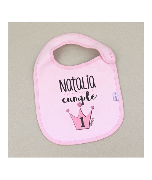 Babero bebé Personalizado Cumpleaños Corona Rosa