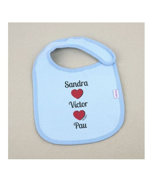 Babero bebé Personalizado Nombre Papá + Nombre Mamá + Nombre Bebé