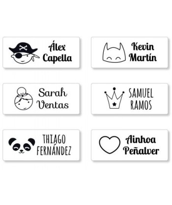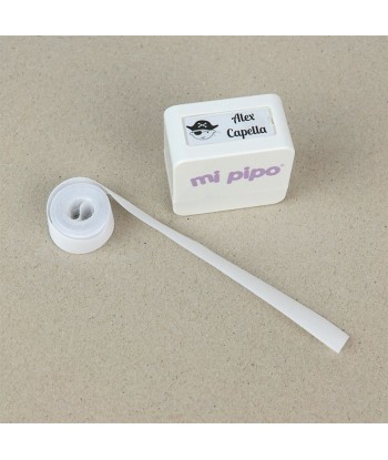 Sello Marcaprendas Personalizado con rollo de tela blanco termoadhesiva y cartucho de tinta incluido, apto para marcar prendas y objetos no plastificados.