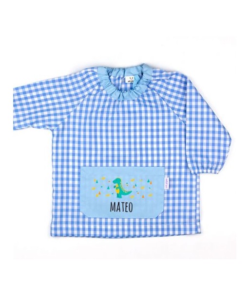 Babi para guardería y colegio personalizado con el nombre de vuestro pequeñ@ bordado. Con dos bolsillos y cierre delantero de botones.