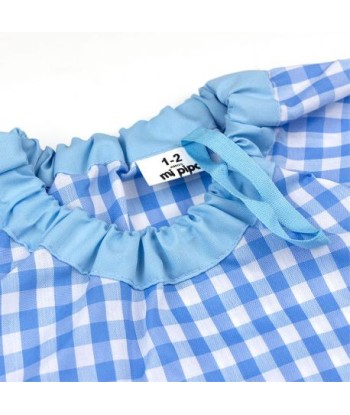 - Tejido popelín 70% poliéster y 30% algodón. Estampado de cuadros pequeños