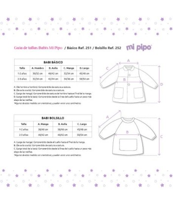 - Revisa las medidas (aproximadas) de las tallas en la tabla adjunta