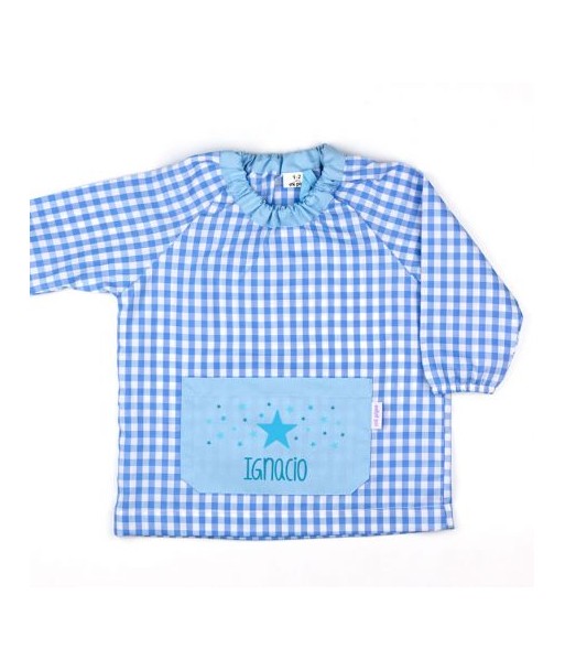 Babi para guardería y colegio personalizado con el nombre de vuestro pequeñ@ bordado. Con dos bolsillos y cierre delantero de botones.