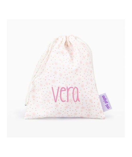 Bolsita guardatodo infantil personalizada con el nombre bordado, 100% algodón con cierre de cordón.