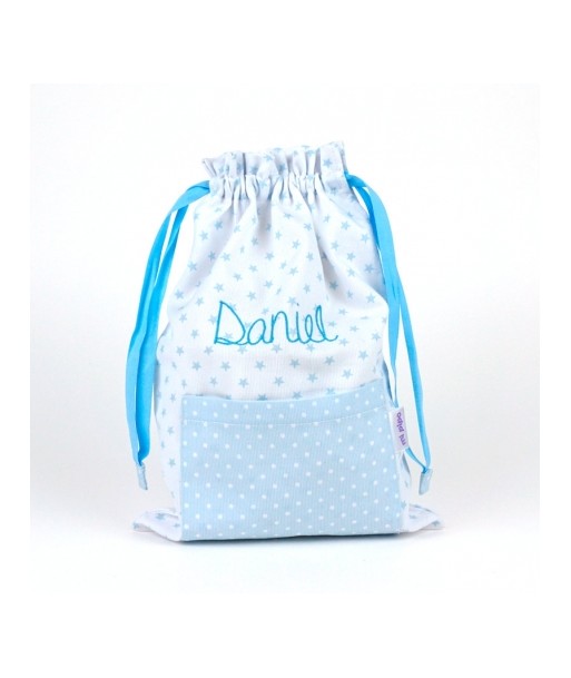 Bolsita guardatodo infantil personalizada con el nombre bordado, 100% algodón con cierre de cordón.