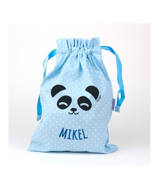 Bolsita guardatodo infantil personalizada con el nombre bordado, 100% algodón con cierre de cordón.
