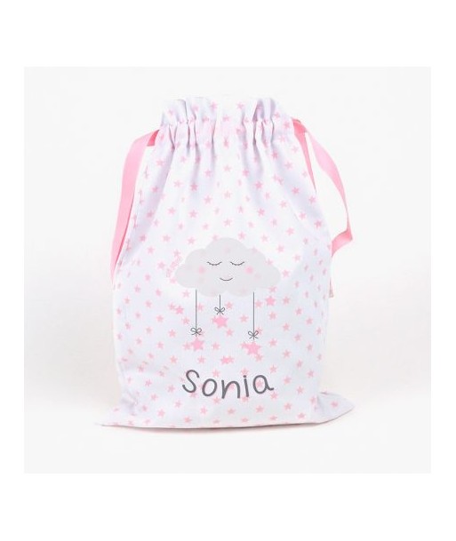 Bolsita guardatodo infantil personalizada con el nombre bordado, 100% algodón con cierre de cordón.