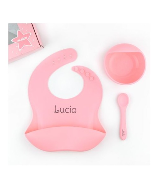 Vajilla perfecta para las comidas de tu bebé, personalizada con su nombre, con babero, bol y cuchara