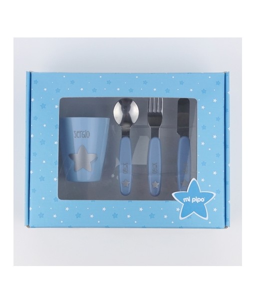 Set completo de cubiertos de acero y vaso personalizado con el nombre de tu bebé, incluye vaso, cuchara, cuchillo y tenedor, perfecto para sus comidas diarias
