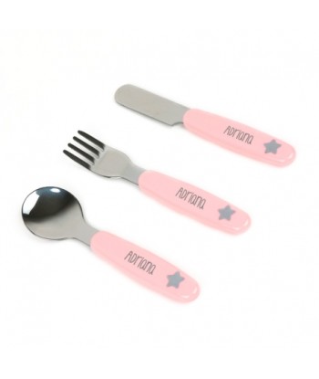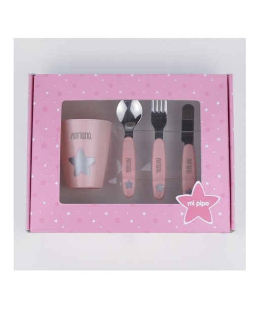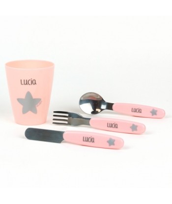Set completo de cubiertos de acero y vaso personalizado con el nombre de tu bebé, incluye vaso, cuchara, cuchillo y tenedor, perfecto para sus comidas diarias