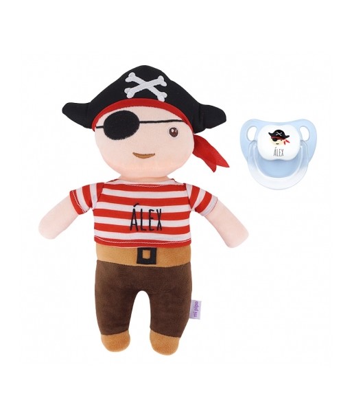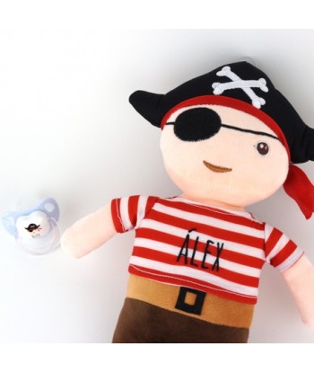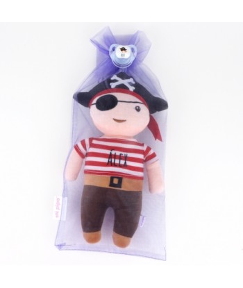 Muñeco Pirata personalizado con chupete a juego para a partir de 0 meses, presentado en bolsa de organza