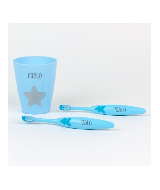 Set Azul de dos Cepillos de dientes y Vasito personalizado