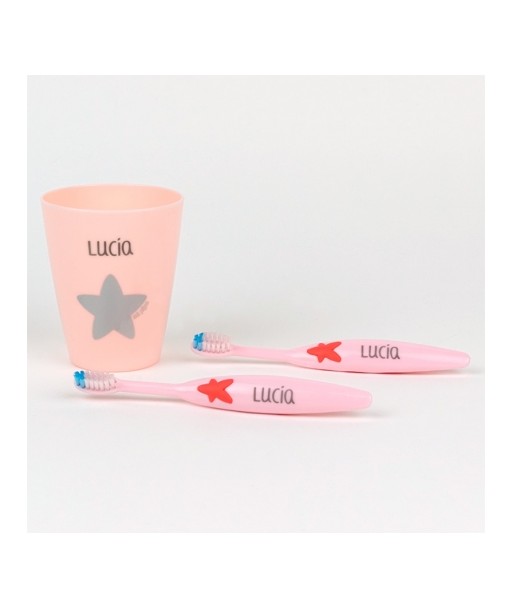 Set Rosa de dos Cepillos de dientes y Vasito personalizado