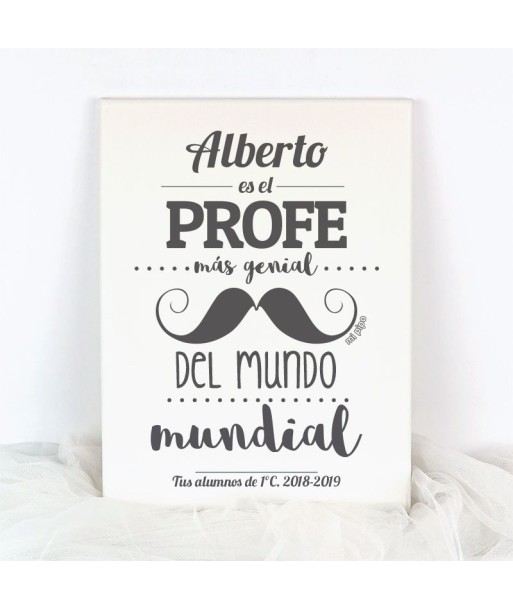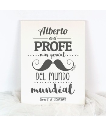 Lienzo Personalizado bigote (nombre) es el Profe más genial del mundo mundial (texto libre)