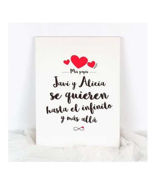 Lienzo Personalizado Mis papis (Nombres padres) se quieren hasta el infinito y más allá