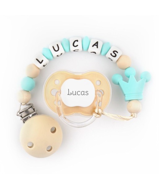 Chupete + Cadenita de silicona Corona turquesa personalizados