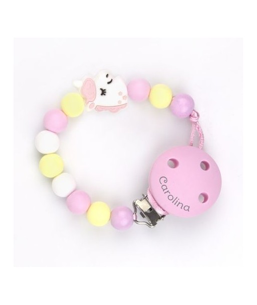Cadenita Silicona Unicornio Rosa con nombre en el CLIP