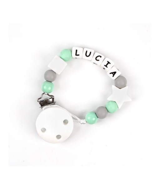 Cadenita de silicona Personalizada Baby Menta y Gris